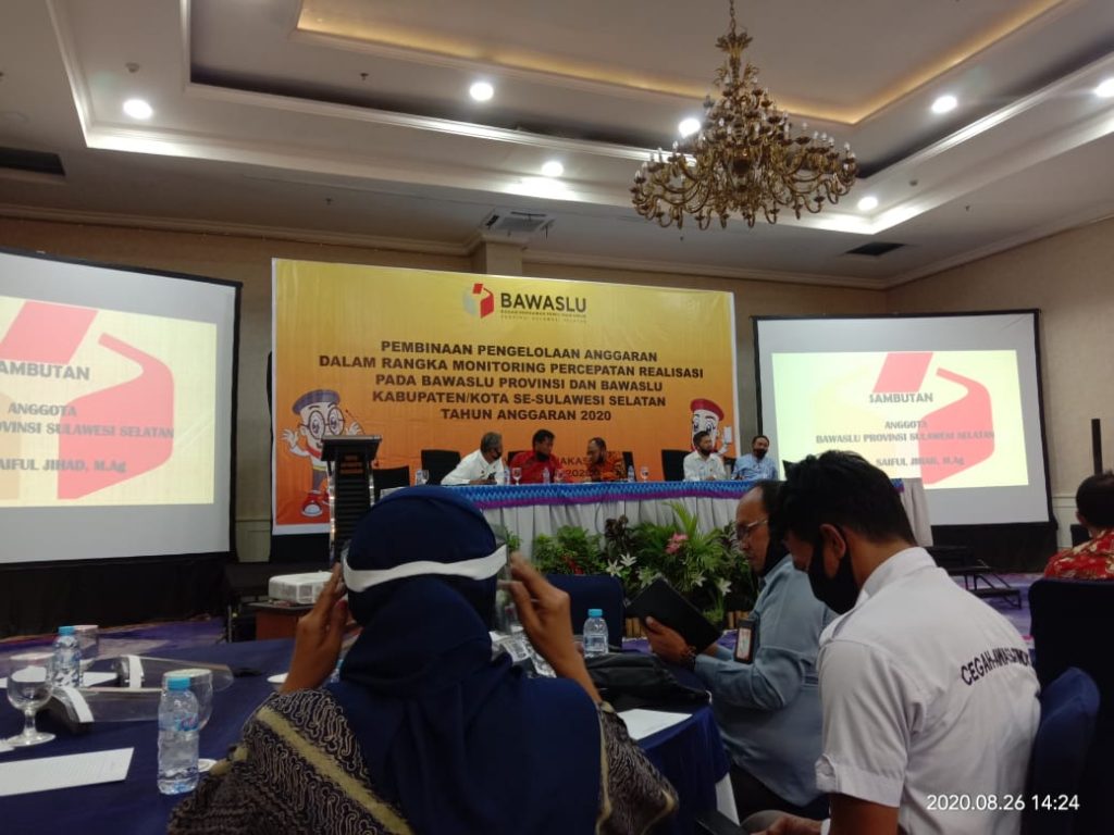 Kegiatan Pembinaan Pengelolaan Anggaran dalam rangka Monitoring Percepatan Realisasi pada Bawaslu Provinsi dan Bawaslu kabupaten/kota se-Sulawesi Selatan Tahun Anggaran 2020.\n\n\n\nPada kesempatan yang sama Kordiv Penyelesaian Sengketa Asradi mengungkapkan apresiasinya terhadap kegiatan yang diselenggarakan di masa pandemi Covid-19 ini.